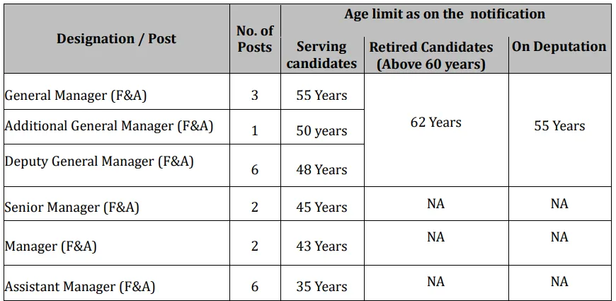 At least 18 years of post-qualification executive experience in Finance & Accounts in a Metro Rail Company/PSU/Large Infrastructure Company. Must have worked in an IDA pay scale of Rs. 90,000 – 2,40,000 or equivalent for a minimum of 3 years.